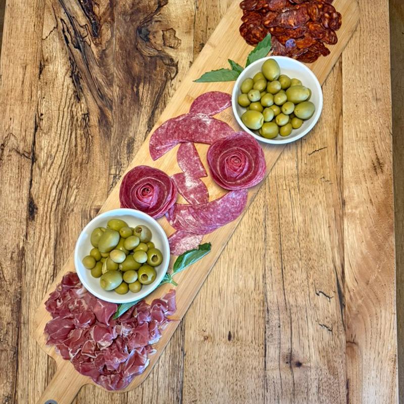 Prosciutto, Spanish chorizo, genoa salami, olives, bread