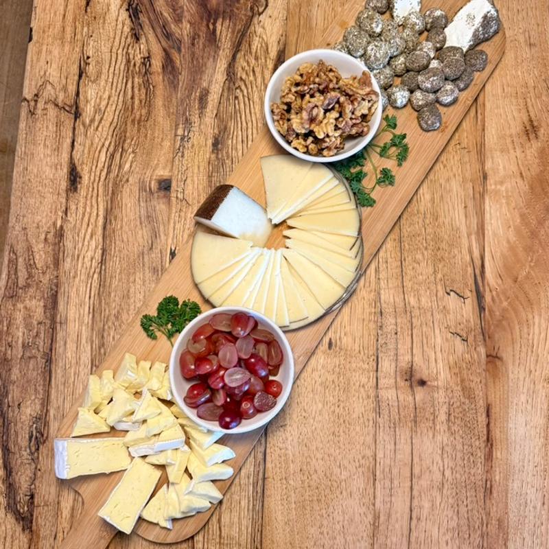 Manchego, brie, goat cheese, candied walnuts, grapes, French bread