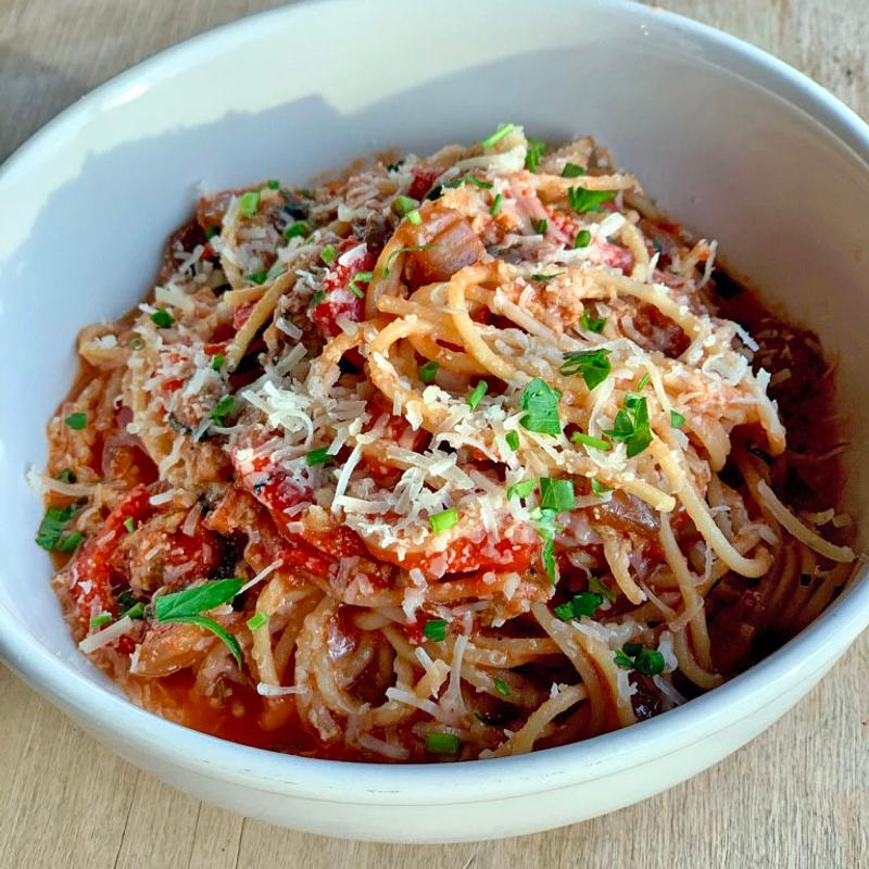 Valoroso tomato, parmesan, roasted garlic. Vegan prep available! Add fennel sausage, smoked onions or roasted peppers +$5