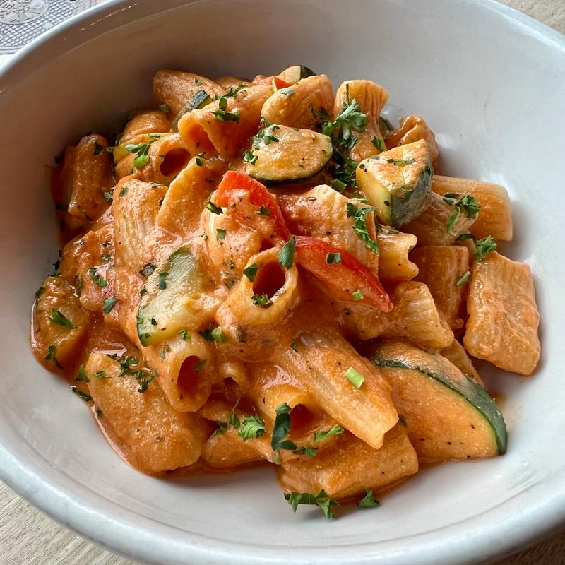 Yellow squash, zucchini, vegan vodka sauce, whipped tofu ricotta