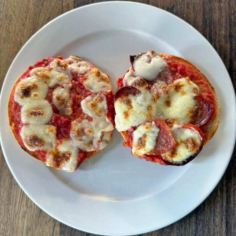 Plain bagel, marinera, mozarrella. Add pepperoni +$1